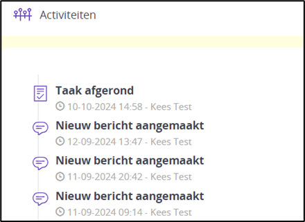 U kunt hier altijd een recent overzicht van nieuwe activiteiten inzien. Ga naar het traject van de betreffende cliënt om de details van de activiteit te zien.