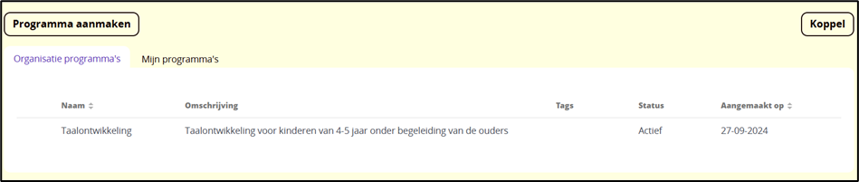 - Geef een naam en omschrijving van het programma en klik rechts bovenaan op opslaan.