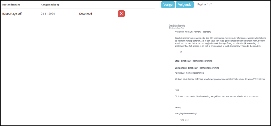 1. Als u op de naam van de stap klikt, krijgt u de inhoud te zien. Hier staat zowel eventueel begeleidende tekst voor u, als de componenten met opdracht voor de cliënt.
