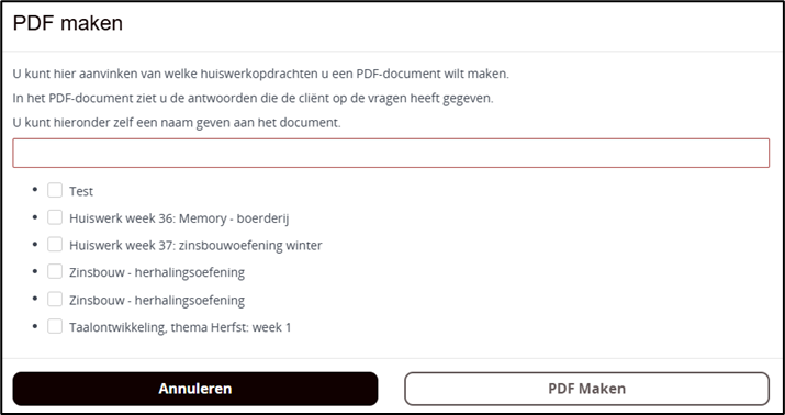 1. Geef het bestand de gewenste naam en vink de to-do’s aan die in de PDF opgenomen moeten worden.