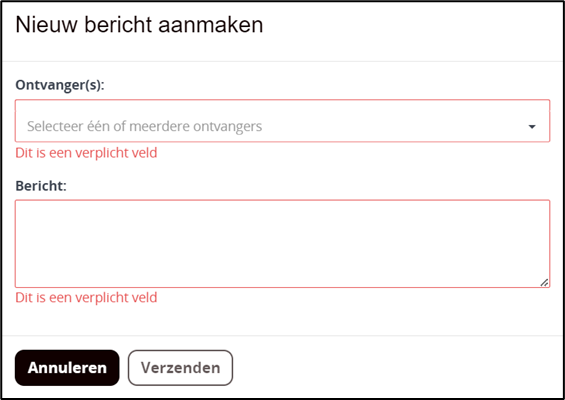2. Het volgende scherm wordt geopend. Vul de desbetreffende ontvanger in en typ een bericht.