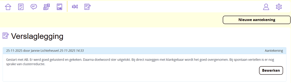1. Klik op nieuwe aantekening. Je kunt dit gebruiken om sessieverslagen, losse aantekeningen en opmerkingen toe te voegen aan het traject. Dit kan de cliënt niet zien.